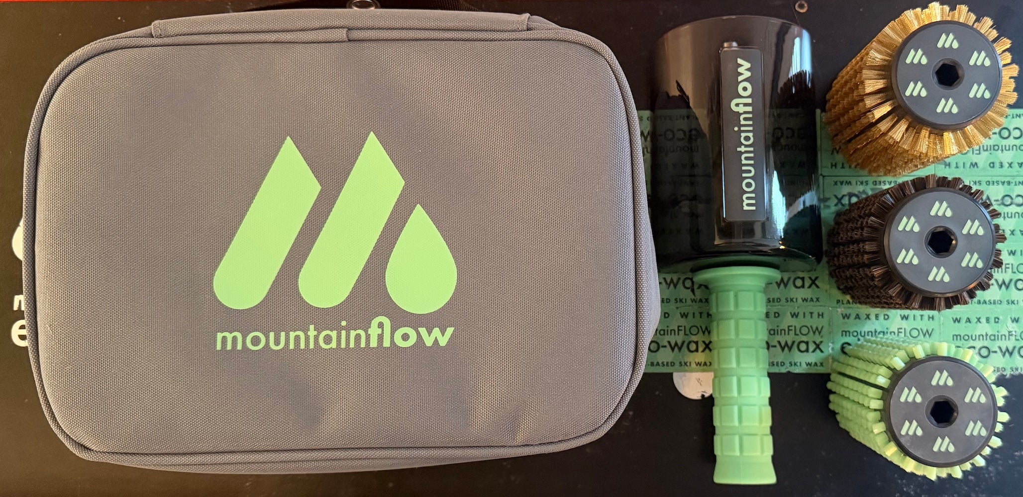 - NYLON BRUSH: First polishing brush. Starts to expose the base structure and removes any remaining wax that has not been absorbed into the base. (Also, it is in the custom mountainFLOW mint green!)